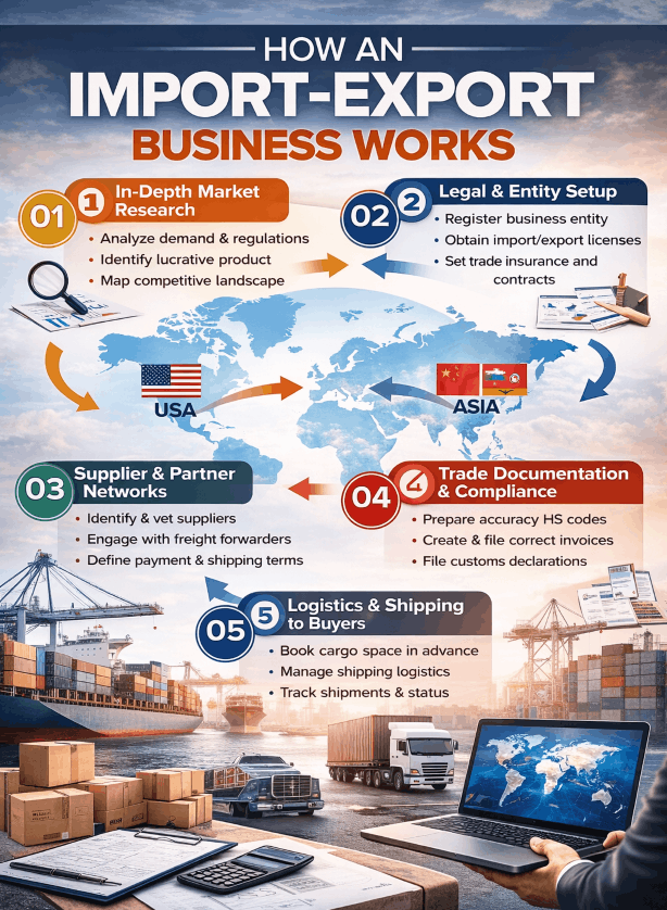 This article breaks down how import-export businesses actually operate, with real operational steps, common bottlenecks, hard trade realities, and actionable profitability strategies — clearly and pragmatically.